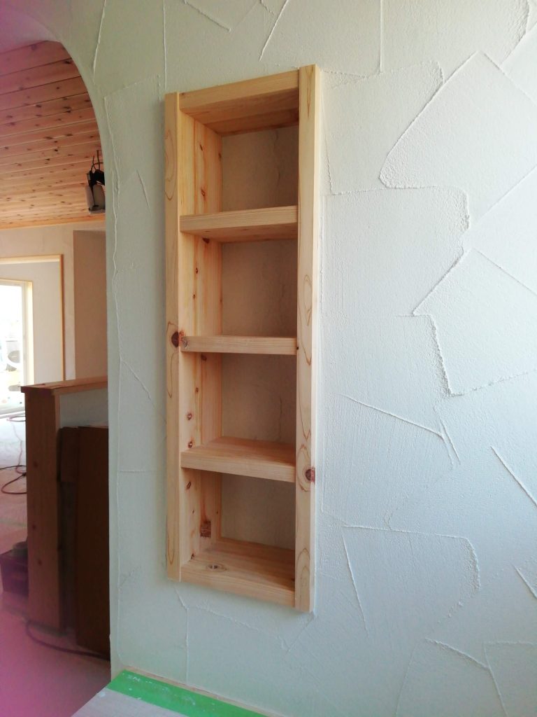 パントリー入り口も雰囲気が変わりました。次の写真は漆喰を塗る前です。