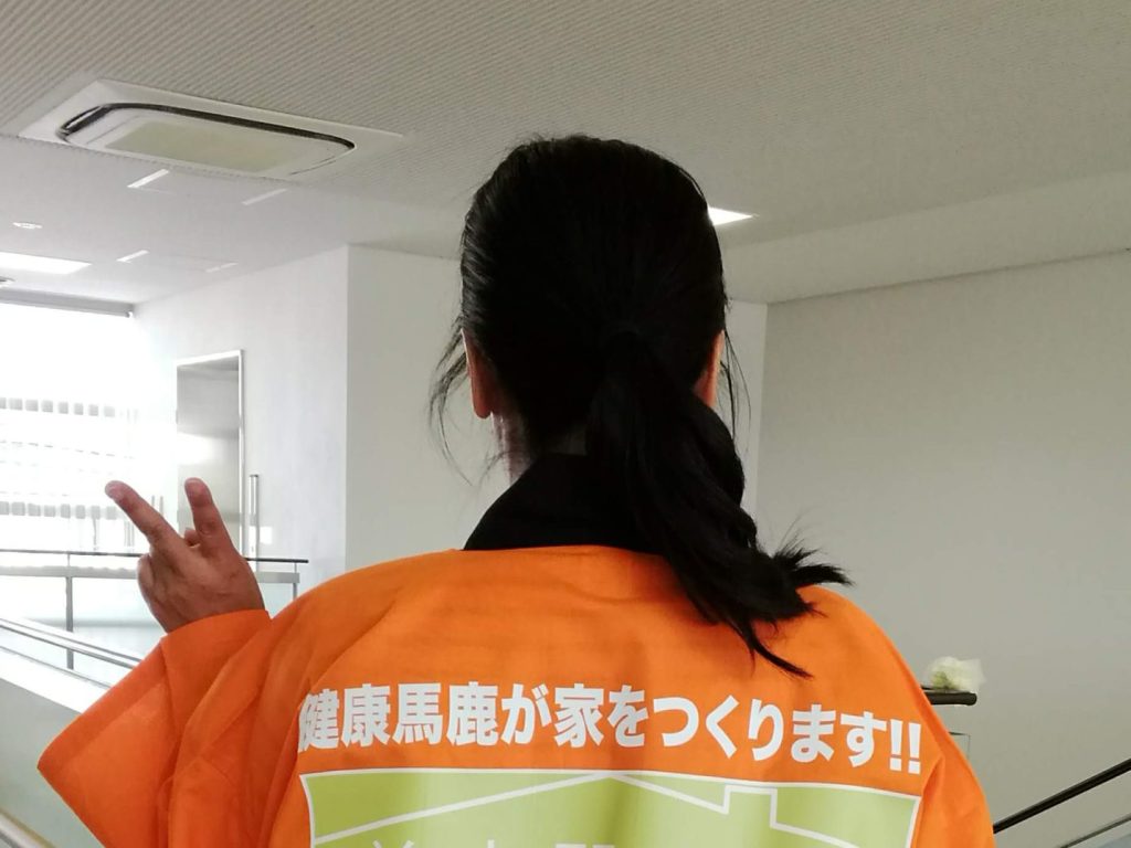 法被の背中には「健康馬鹿が家をつくります!」