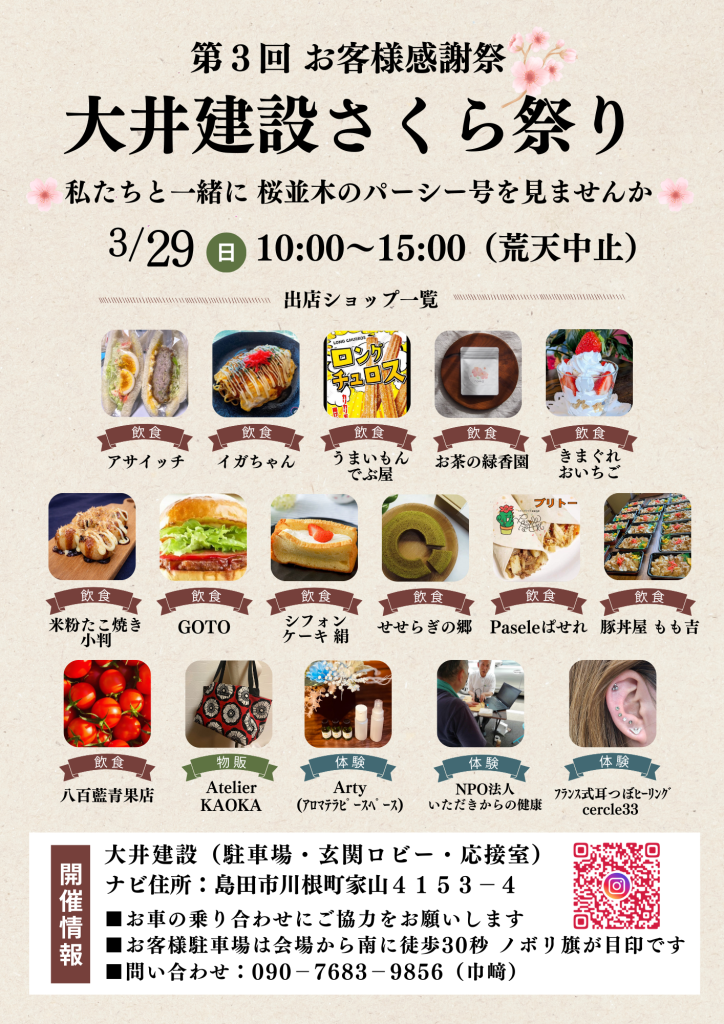 ※次回の主催マルシェは3/29の大井建設さくら祭りです。詳細は後日お知らせします。